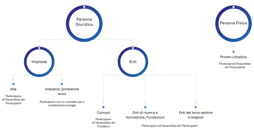 I Produttori mettono a disposizione un’area su cui installare impianti, senza autoconsumo. Percepiscono la tariffa incentivante per la condivisione di tutta l’energia prodotta, in proporzione al suo consumo istantaneo all’interno della CER e comunque fino al raggiungimento della soglia massima prevista.